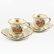 핸드메이드 골드테두리 퀸로즈 커피잔 2인조 - 190239006