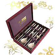 키친아트 / 고급 비단 수저케이스 산수화 골드티타늄 수저세트 - 636139012
