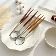 우드수저의 감성과 스텐수저의 튼튼한 내구성의 수저세트 우드핸들 수저세트 2p - 321839468