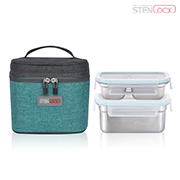 유니크한 색감의 도시락가방과 안전한 스테인리스 재질의 도시락통! 퓨어 직사각 도시락2단 중 (500ml+1000ml)[스텐락] - 255539107