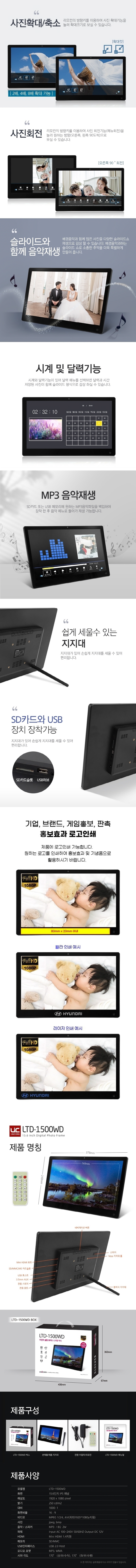 유니콘 15.6인치 16:9 슬림 와이드 IPS패널 디지털액자 LTD-1500WD