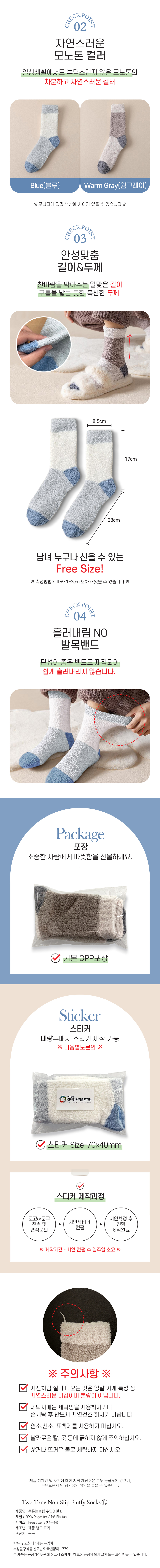 투톤논슬립 수면양말L(미끄럼방지)