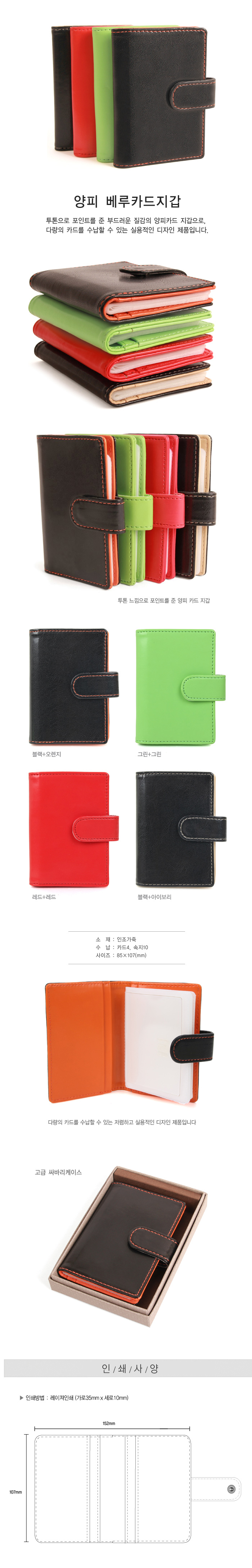 * 다량의 카드와 소량의 명함을 함께 수납할 수 있는 실용적인 디자인 제품(카드속지 10장)