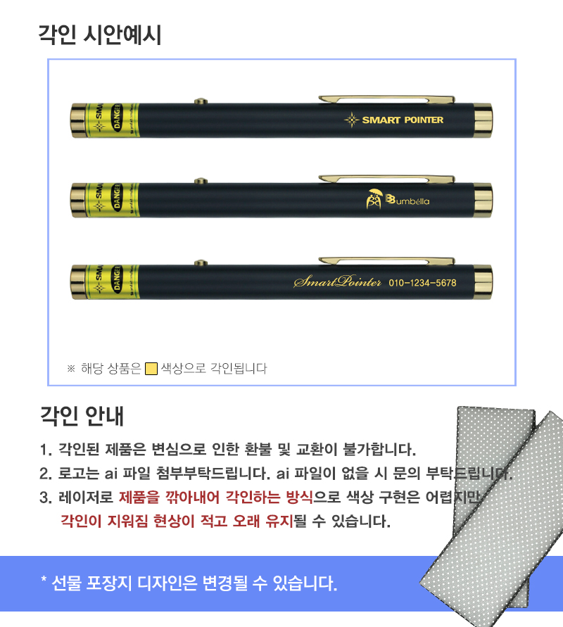 인쇄는 레이저 인쇄 가능이며 인쇄색상은 골드 입니다.