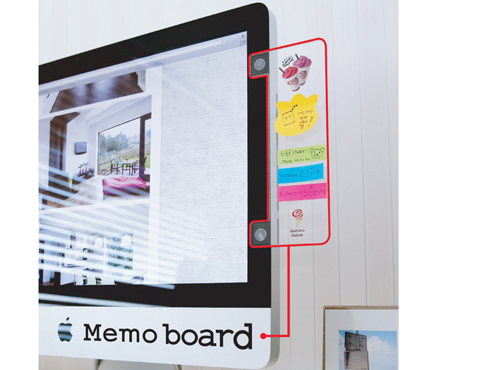점착메모지를 붙여 모니터 주변을 정리,정돈하는 메모보드입니다.