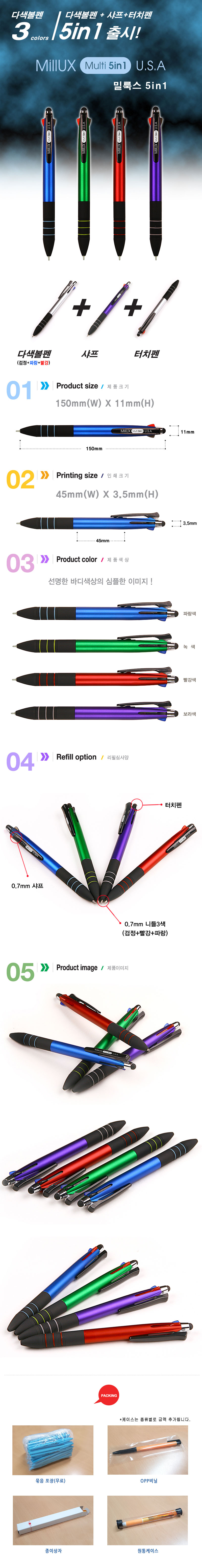 멀티 5in1 터치펜 (3색+샤프+터치) 밀룩스