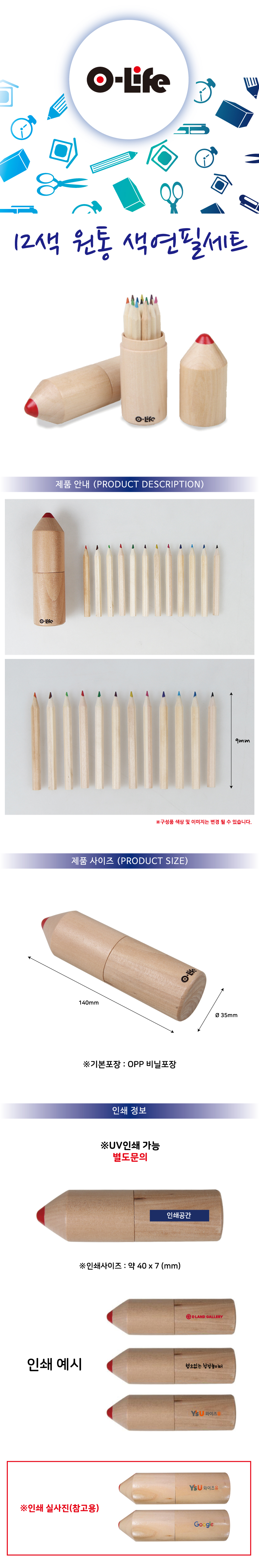 오라이프 12색 원통색연필