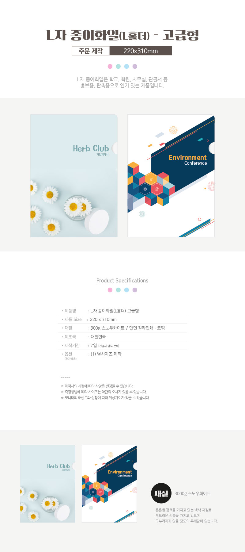 [독판 주문제작] L자 종이화일(L홀더) 고급형