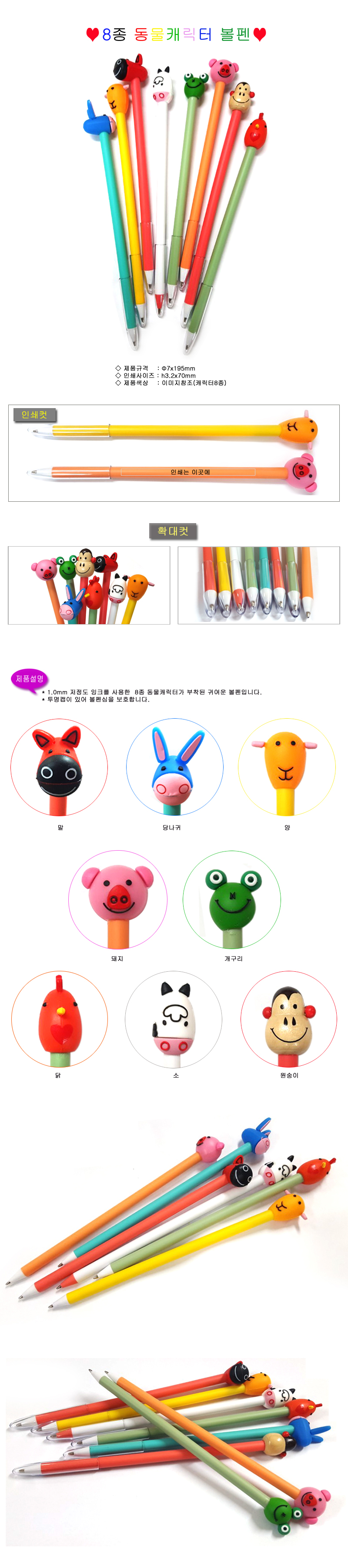 8종 동물 캐릭터볼펜