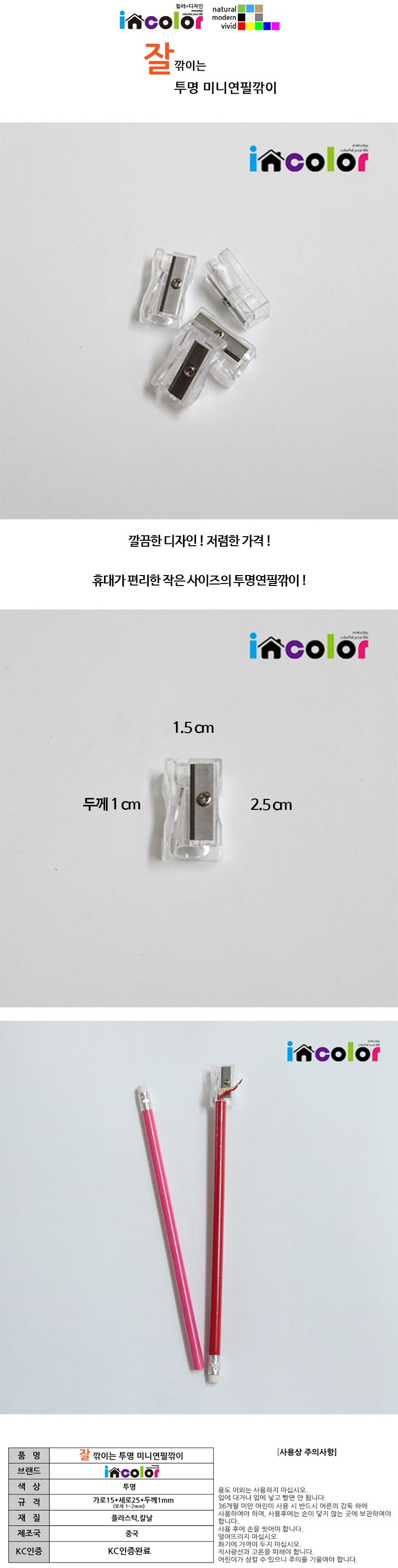 incolor 잘 깎이는 투명 미니 연필 깎이