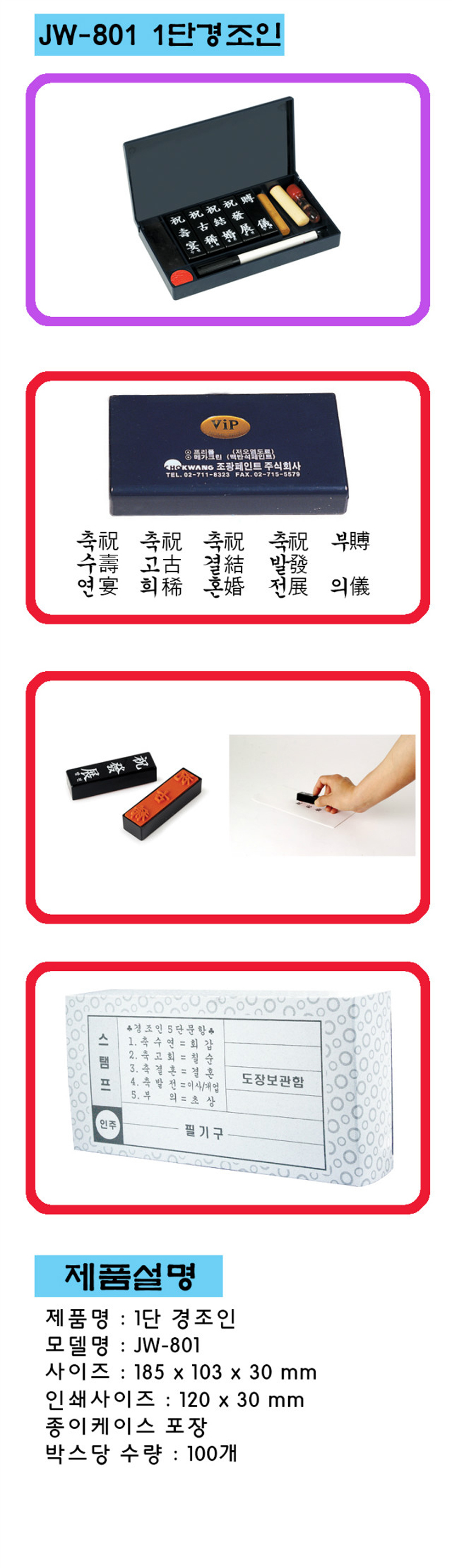 * 가정에서 주로 쓰는 5개의 경조인과 인주,스템프로 구성된 제품