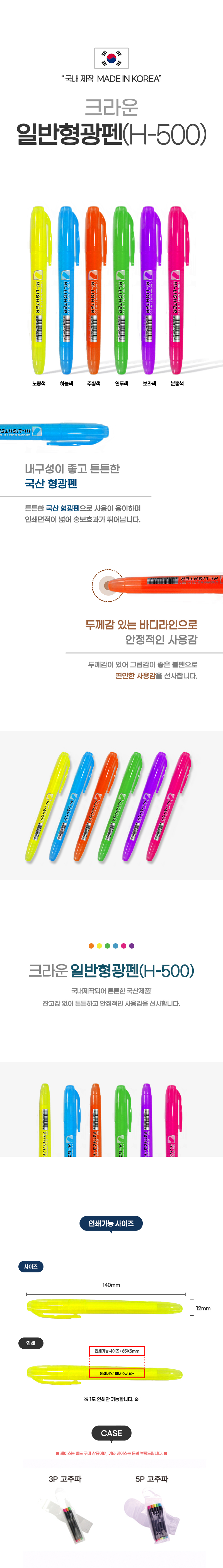 선명한 6색 컬러로 구성된 크라운 일반형광펜