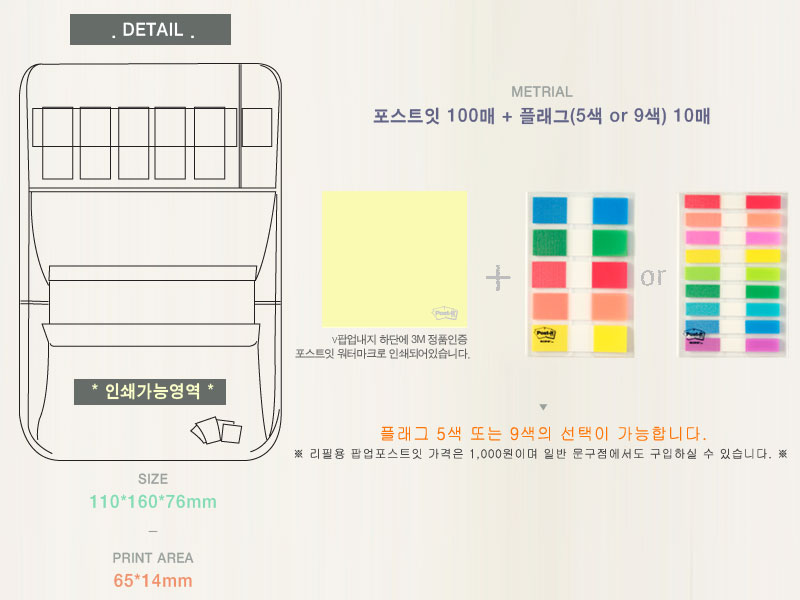 - 포스트잇에 인쇄를 원할 경우 100% 미국산 원단이므로 반드시 재고 여부 확인 후 주문하시기 바랍니다.