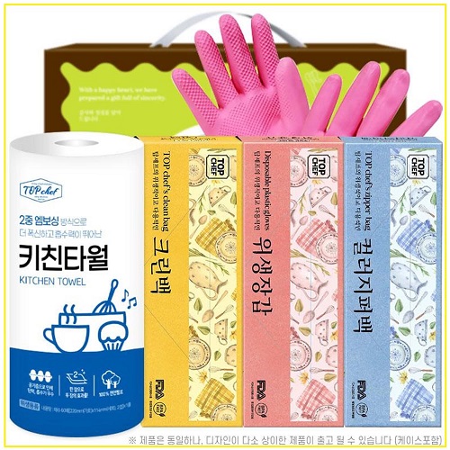 키친타올 크린백 위생장갑 컬러지퍼백 고무장갑 주방용품 5종세트