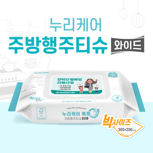 2배 커진 원단! 뽀득뽀득 찐 세정력! 안심 주방 행주티슈