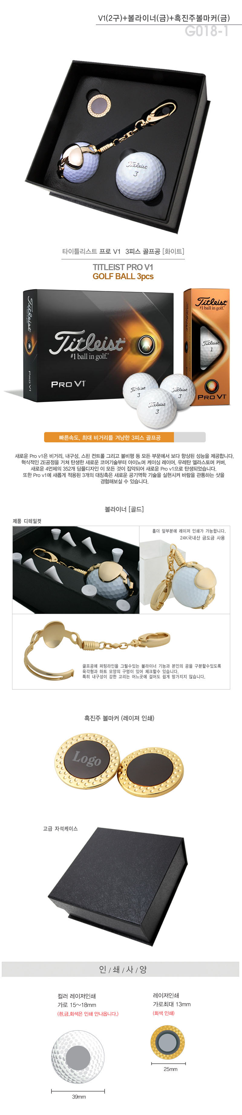 타이틀리스트 pro v1(2)+볼라이너(금)+흑진주볼마커(금)