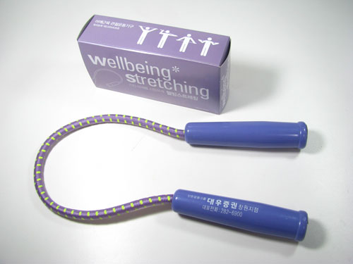 - 손잡이가 달린 탄력있는 고무줄끈을 이용하여 운동부족으로 굳어진 직장인, 수험생, 주부, 컴퓨터 사용자의 어깨근육과 관절을 혼자서 손쉽게 풀어주는 간편한 스트레칭기구입니다.