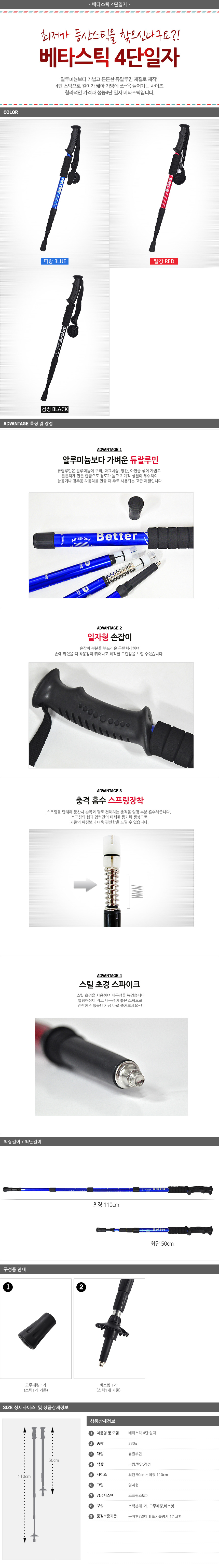 베타 등산스틱 4단 일자 1p