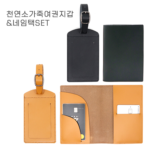 천연소가죽여권지갑&네임택SET