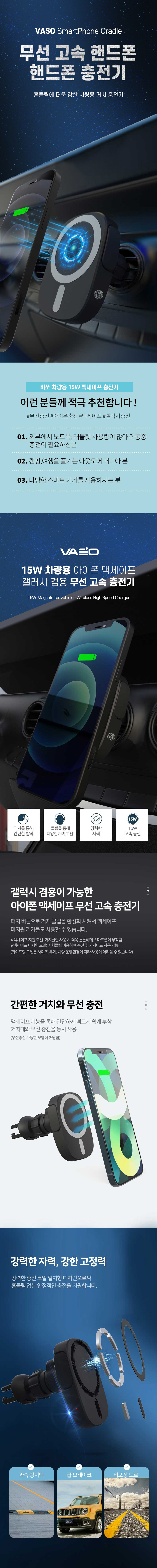 [바쏘] 차량용 맥세이프 고속 무선 충전 거치대