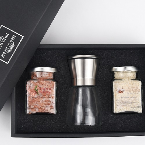 최고급 304스텐 그라인더 히말라야 핑크소금 3P세트 (핑크굵은소금 + 그라인더 + 구운마늘소금)
