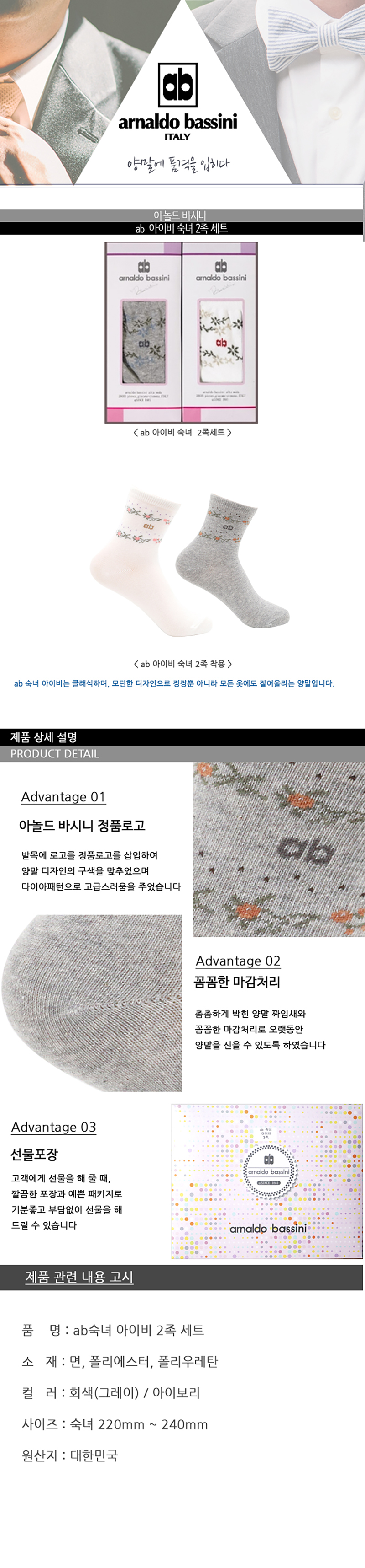 ab 아놀드바시니 숙녀 아이비 2족세트