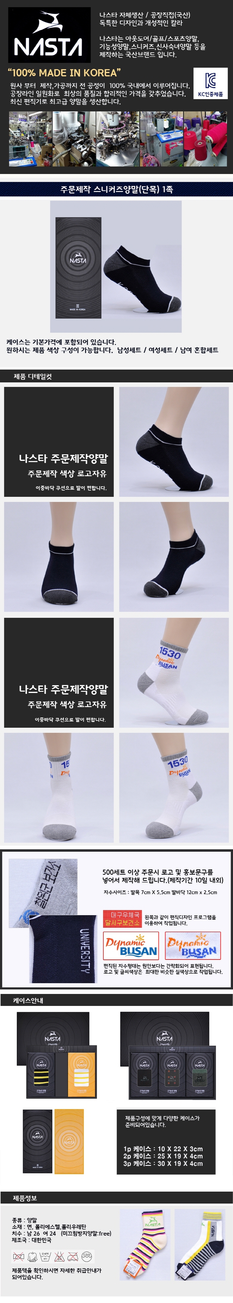 나스타 주문제작 스니커즈 양말(단목) 1족
