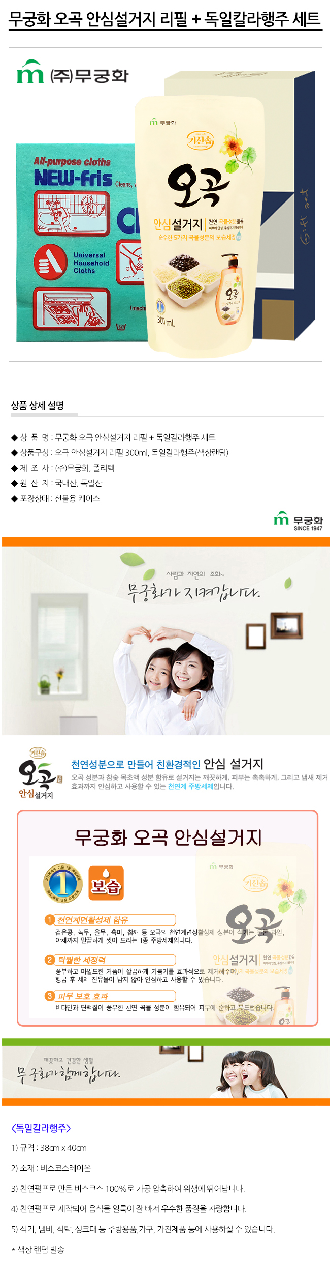 오곡 안심설거지 리필 300ml + 독일칼라행주