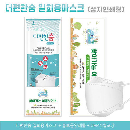 일회용마스크에 넉넉한 공간의 인쇄 홍보물을 동봉 포장합니다.