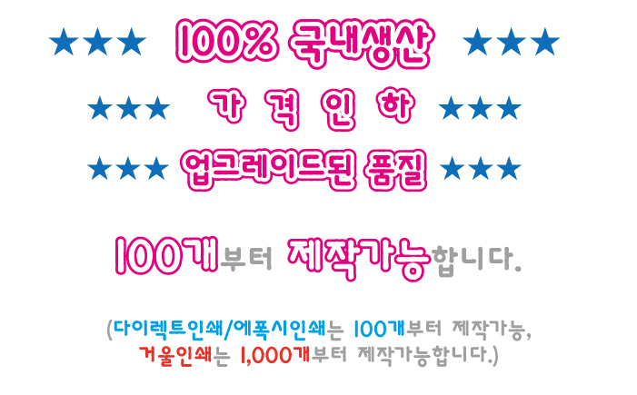 1,000개 이하 주문시 반드시 유선상으로 별도 견적을 받으세요. 자동계산된 금액은 1000개 이상만 적용됩니다.