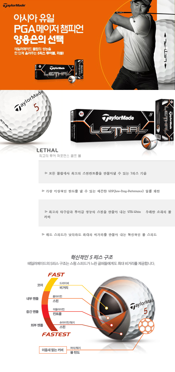 - 최고의 타구감과 투어급 성능의 스핀을 만들어 내는 우레탄 소재의 볼커버