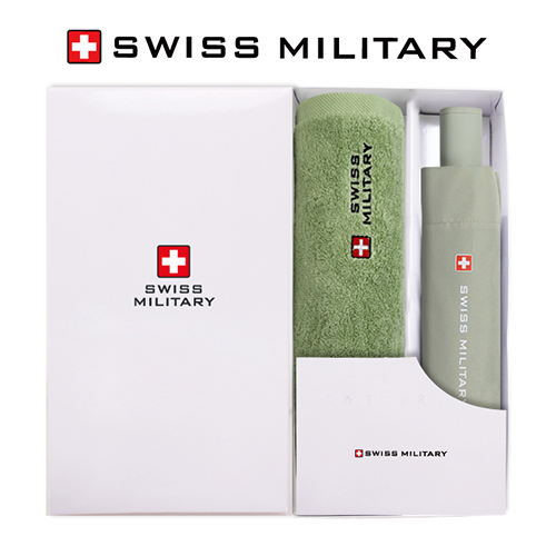 스위스밀리터리 친환경 3단수동 우산+180g코마사타올 세트