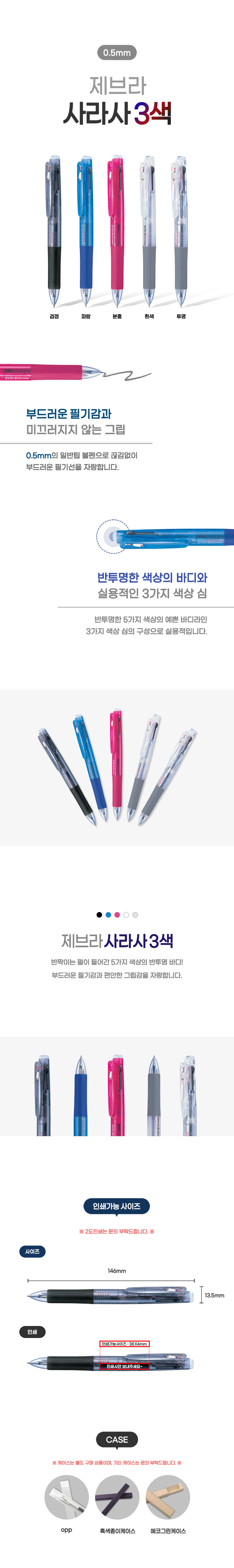 * 흑색중성펜+적색중성펜+청색중성펜의 3색중성펜입니다.