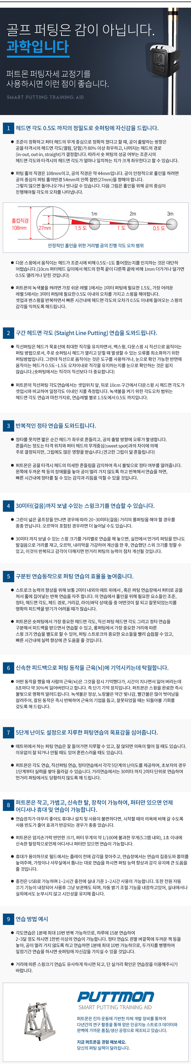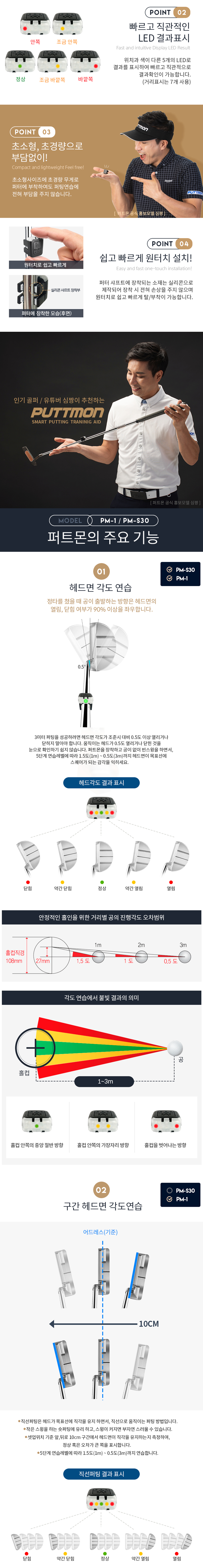 PM-1 고급형모델은 해드면 각도연습(어드레스 기준 스퀘어연습)과 정타연습, 거리연습, 구간 해드면 각도연습(어드레스 기준 직선퍼팅 구간 스퀘어연습)을 지원합니다.