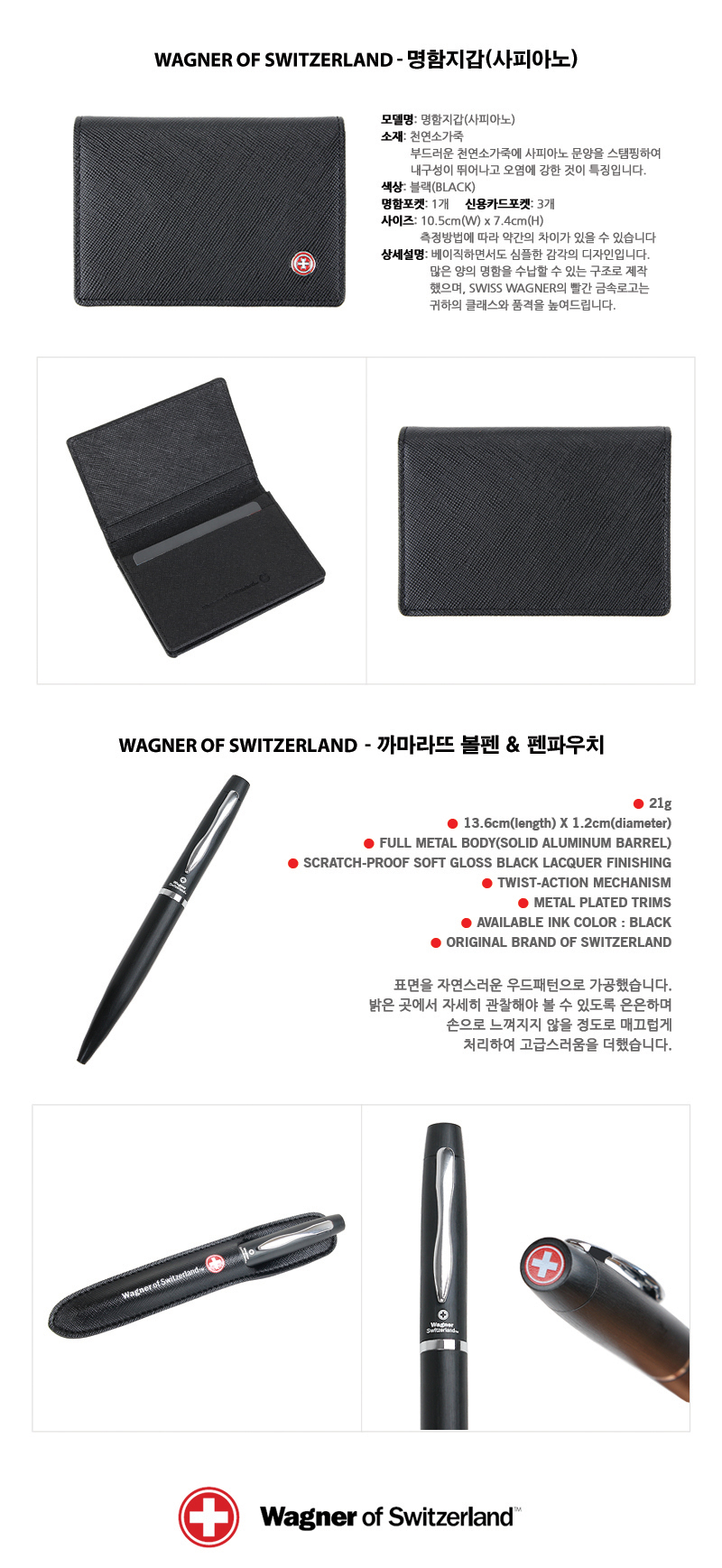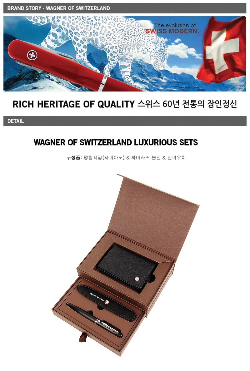 * 스위스와그너의 빨간금속로고장식과 내부의 불박인쇄는 제품의 품위를 더합니다.