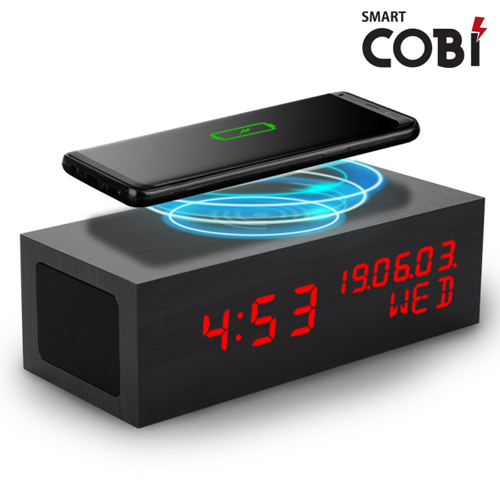 스마트코비 R1313 블루투스스피커,무선충전시계_BK