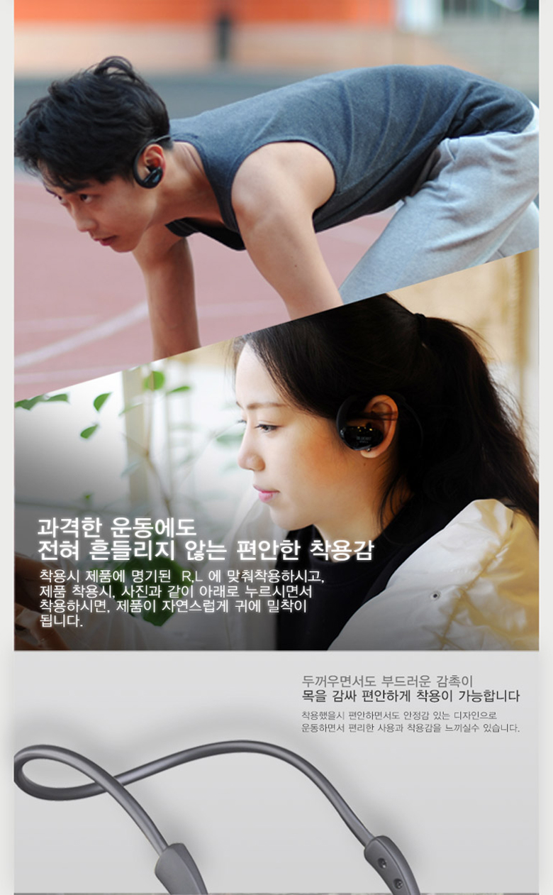 스포츠형 블루투스형으로 제작되어 줄때문에 꼬이거나 엉깅이 없고, 탁월한 음질을 자랑합니다