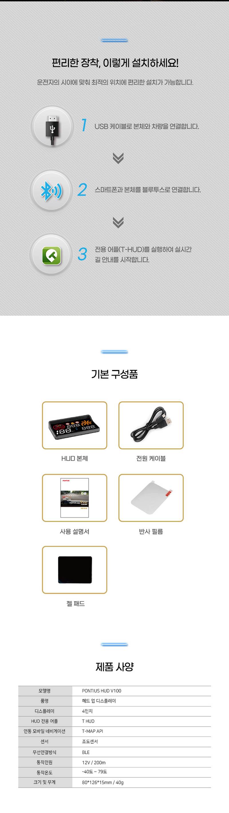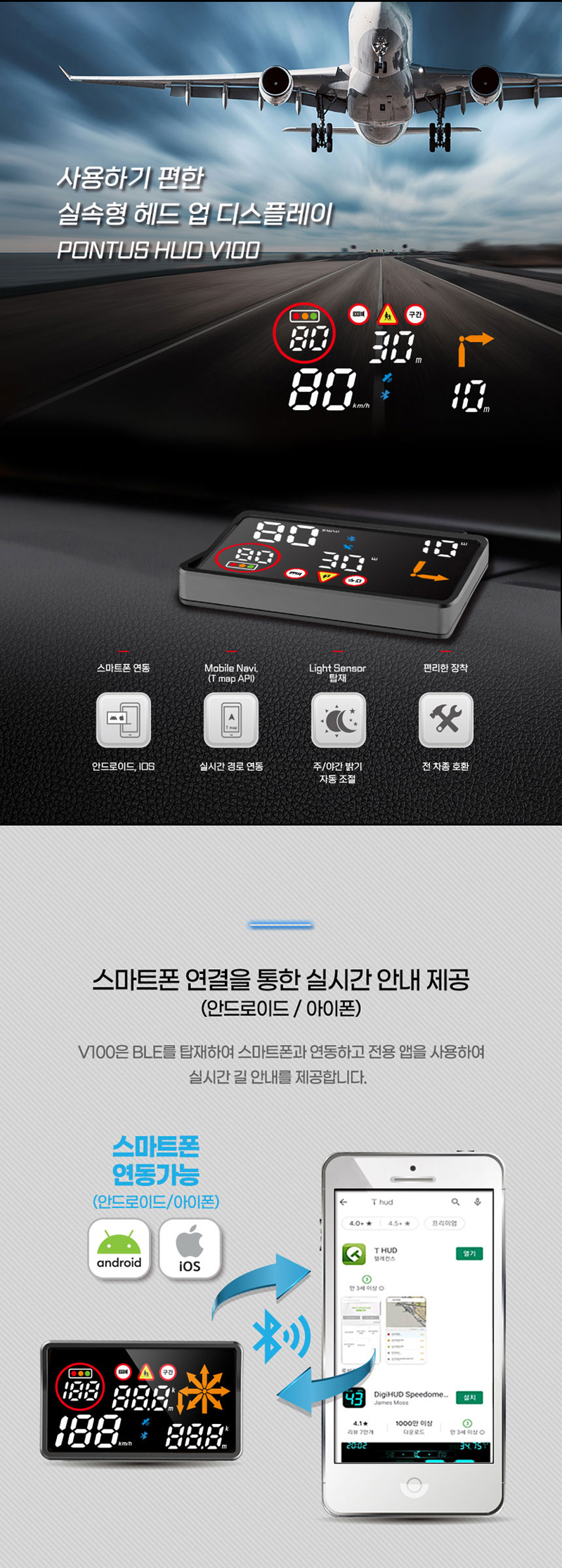 HUD V100 헤드업디스플레이 T맵 API 연동 현대 폰터스