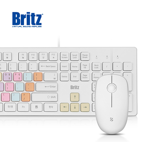 Britz 브리츠 BK200C Rainbow USB 메브레인 유선키보드+유선마우스 세트+키스킨제공