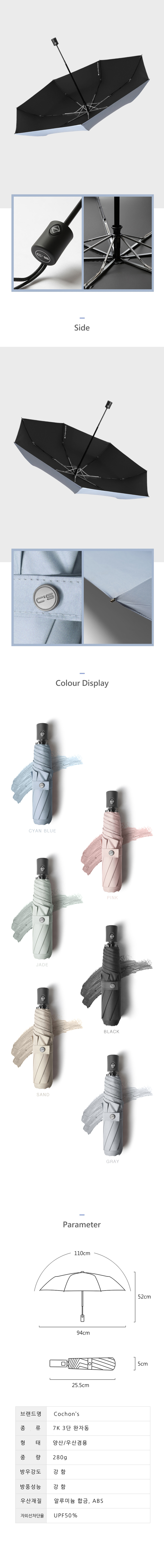 코션 M3 3단 자동 LRC 암막 양우산(UPF50+)